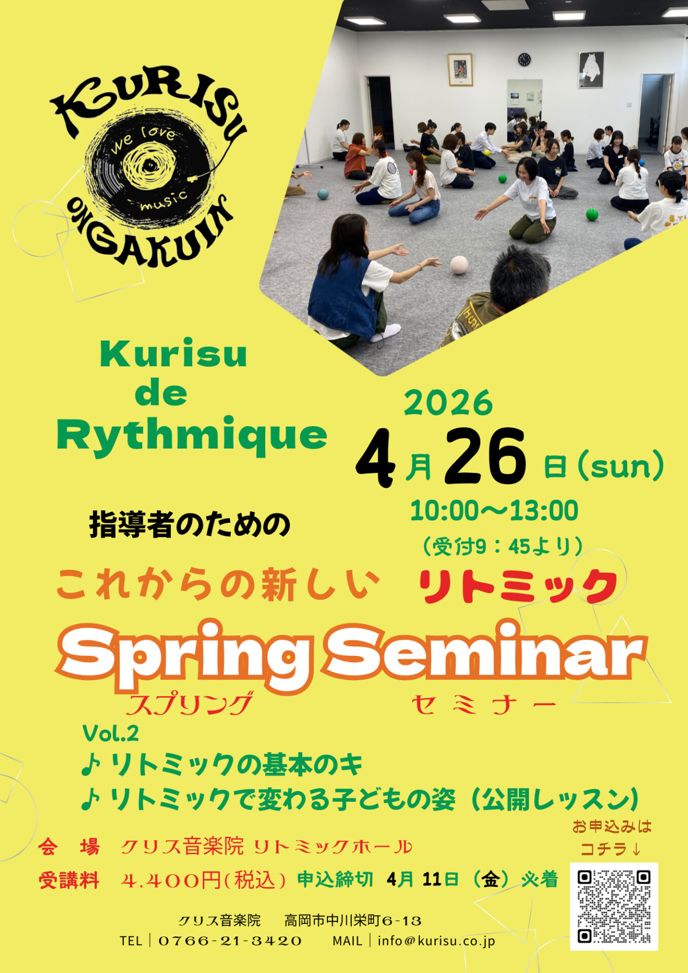 これからのリトミックを指導する方々へのセミナーです。リトミックの基本を再確認しながらこれからのリトミックを学び新しい自分のリトミックを探してみませんか。公開レッスンで子どもたちの生のリトミック反応を感じてください。皆さんのご参加是非お待ちしております!